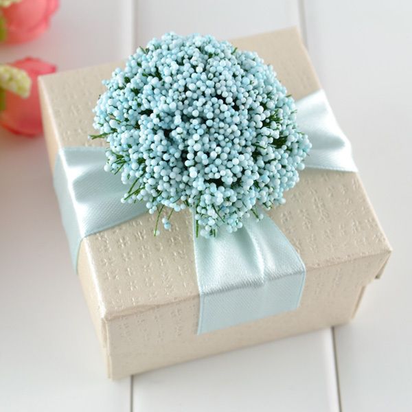 100 Pcs Sky Blue Ribbon Elegant Box Ivory Jewelry Square Boxes With Flower Wedding Favor Gift