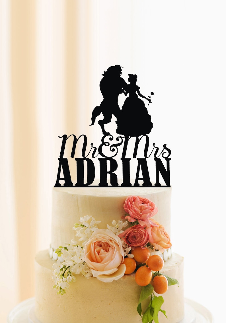 Beauty And The Beast Wedding Cake Topper Personalized Cake Topper Mr And Mrs Cake Topper Customized Last Name Topper