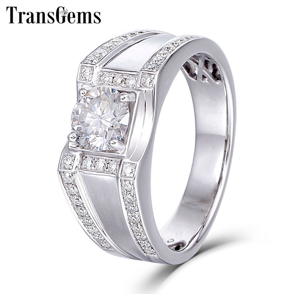 Transgems 585 14k White Gold Men S Wedding Band Center 0 5ct 5mm F Color Moissanite Engagement Ring For Men Wedding Y19032201