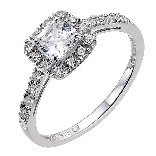 9ct White Gold Cushion Cut Cubic Zirconia Shoulder Ring