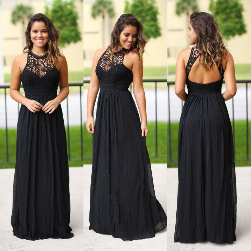 Sexy Long Black Chiffon Bridesmaids Dresses 2017 Halter Neck Cheap Lace Country Bridesmaid Dress Wedding Party Gowns