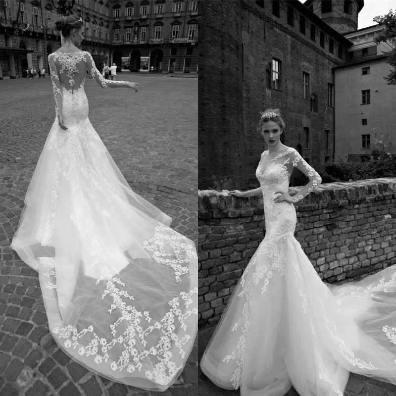 Sheer Illusion Mermaid Wedding Dresses 2016 Lace Long Sleeves Alessandra Rinaudo Applique Court Train Bridal Gowns Covered Button