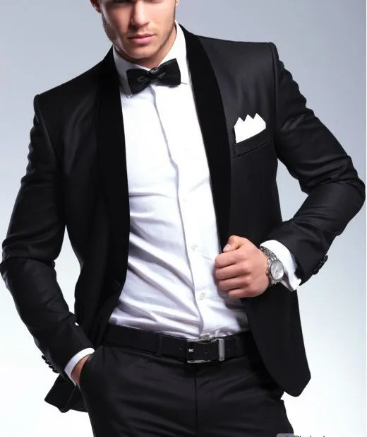 2015 Custom Made Groom Tuxedos Black Formal Suits Wedding Suits