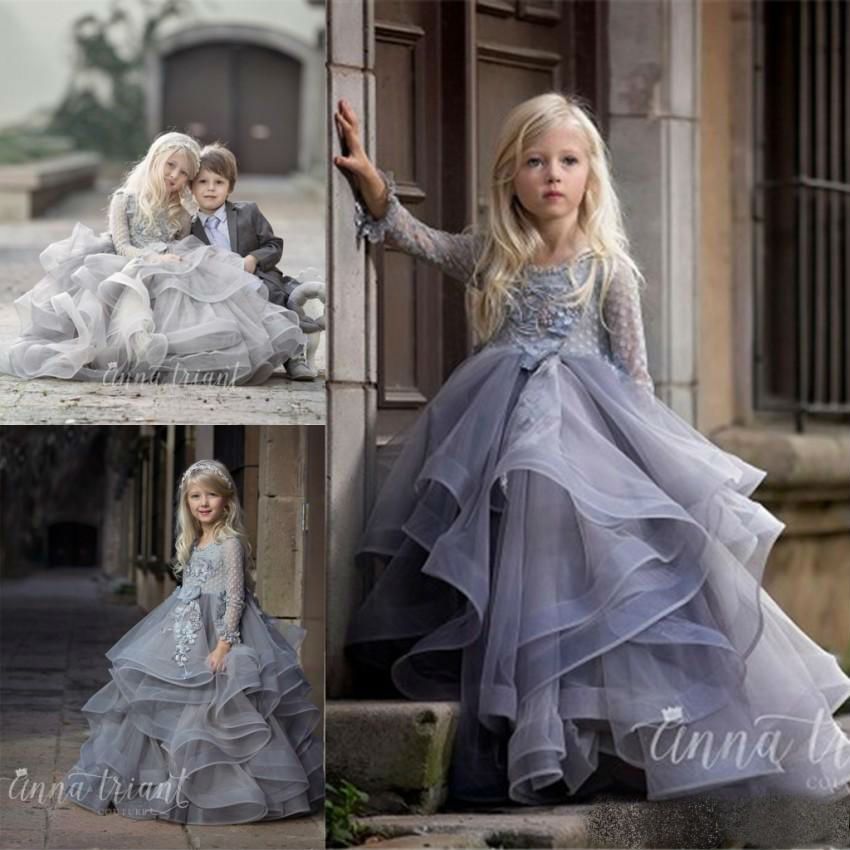 Cute Kids Designer Flower Girl Dresses For Wedding With 3d Floral Appliques Beaded Tiered Ruffles Pageant Dresses Girls Communion Dress