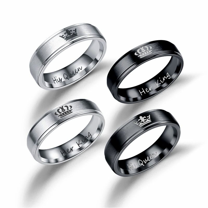 Stainless Steel Her King His Queen Ring Silver Black Band Ring Couple Rings For Lovers Wedding Jewelry K6048