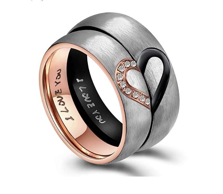 His Hers Real Love Heart Promise Couple Ring Titanium Steel Couples Wedding Engagement Bands Top Ring 6mm Rose Gold And Black Color