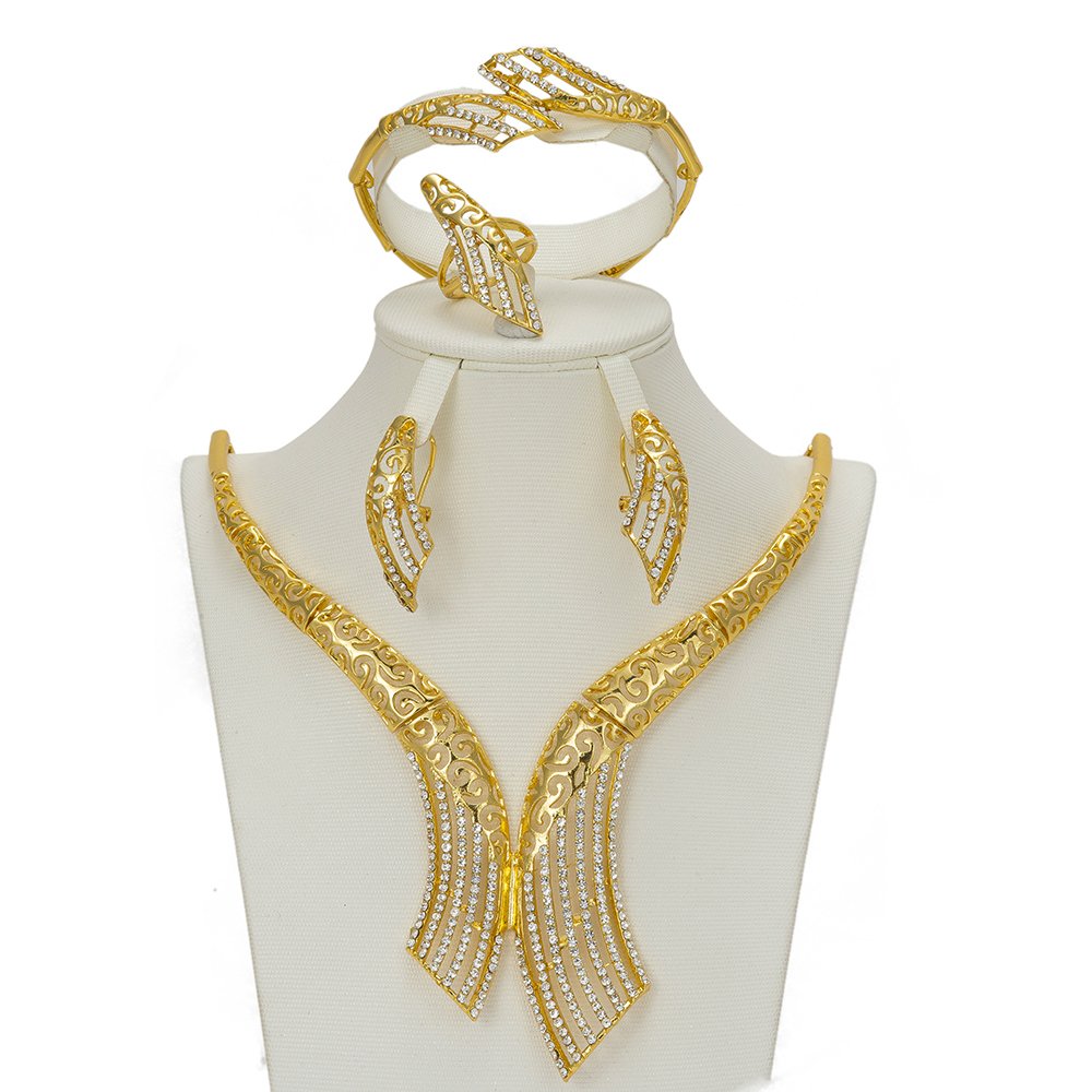 New Indian Fashion Bridal Statement Jewelry Sets Austrian Crystal Necklace And Earrings Women Party Wedding Jewelry Accessories