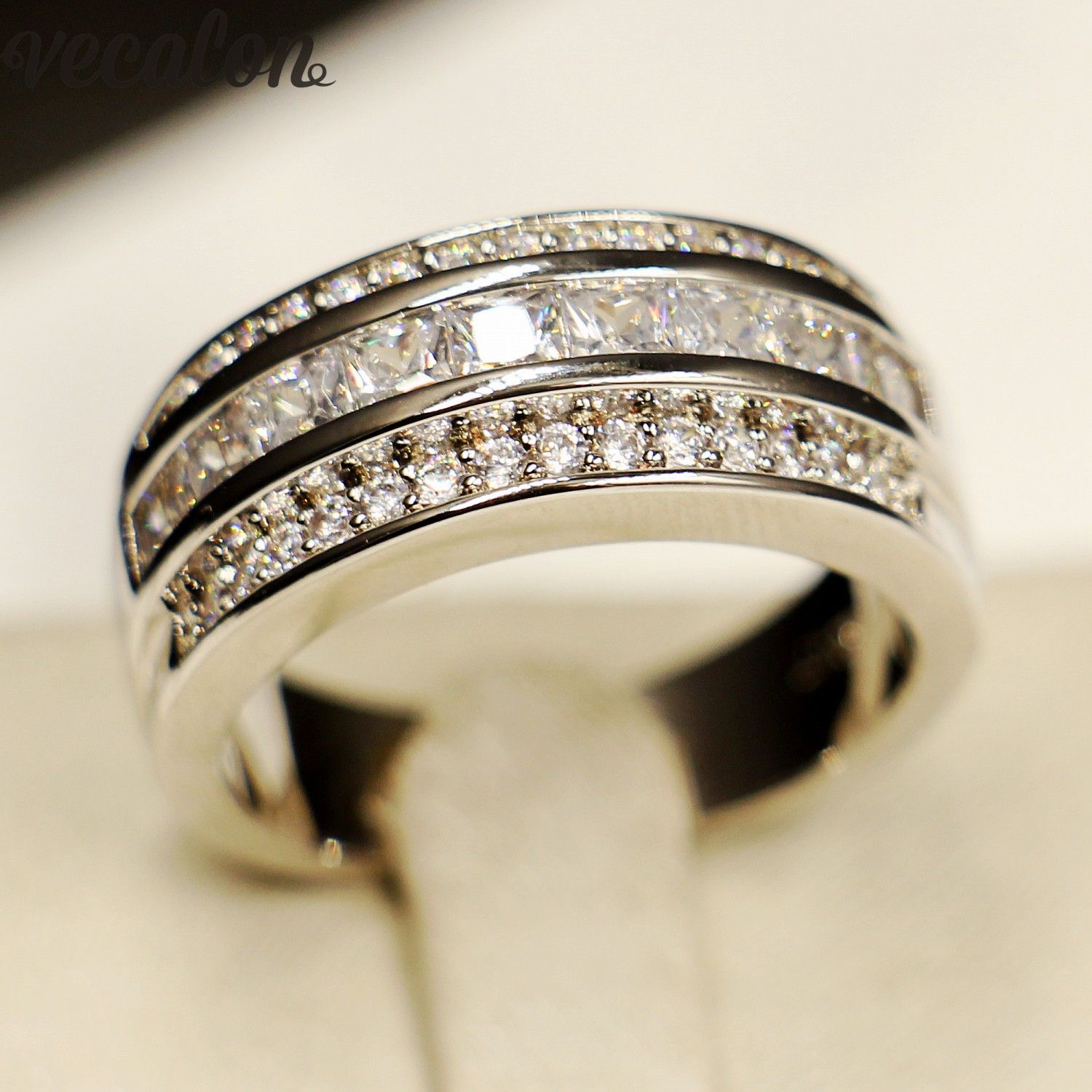 Vecalon Princess Cut 5a Zircon Cz Wedding Band Ring For Men 10kt White Gold Filled Male Engagement Band Ring Sz 7 12