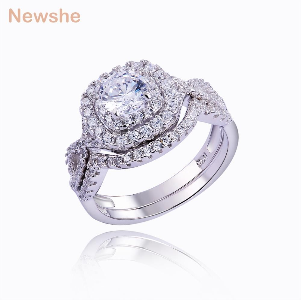Newshe 1 9 Ct 2 Pcs Solid 925 Sterling Silver Wedding Ring Sets Engagement Band Fashion Jewelry For Women Jr4844 Wzw