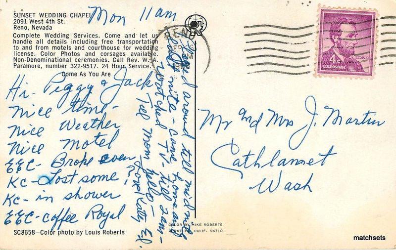 1960s Sunset Wedding Chapel Interior Reno Nevada Roberts Postcard