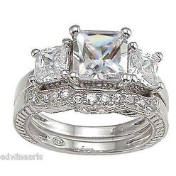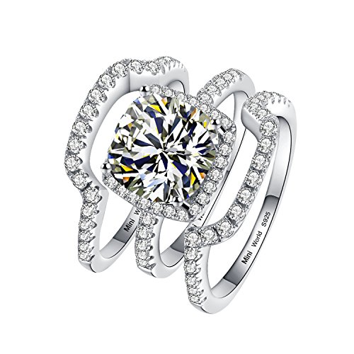 Wild D Silver Bridal Engagement Ring Sets 3pcs 3 Carat D E F Color Princess Cut Synthetic Diamond For Wedding Engagement Anniversary Brithday Gift
