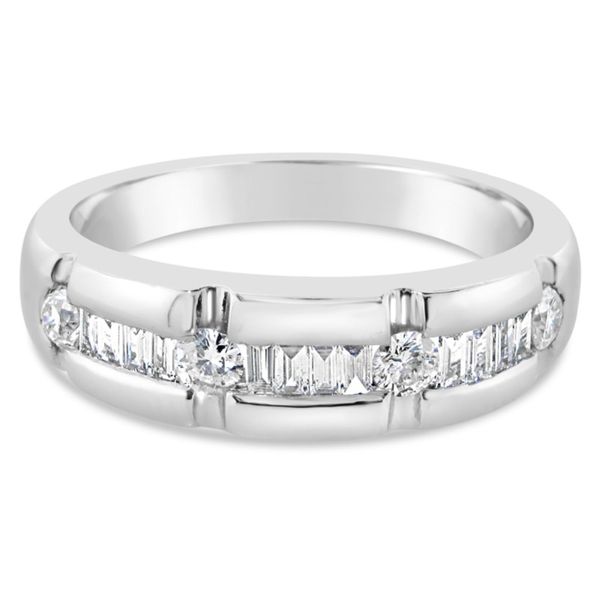 Men S 1 Ct T W Baguette And Round Diamond Wedding Band In 14k White Gold Zales Outlet