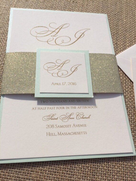Mint Wedding Invitation Gold Glitter Invitation Mint And Gold Wedding Invitation Mint Green Glitter Wedding Invitation Wedding Invites