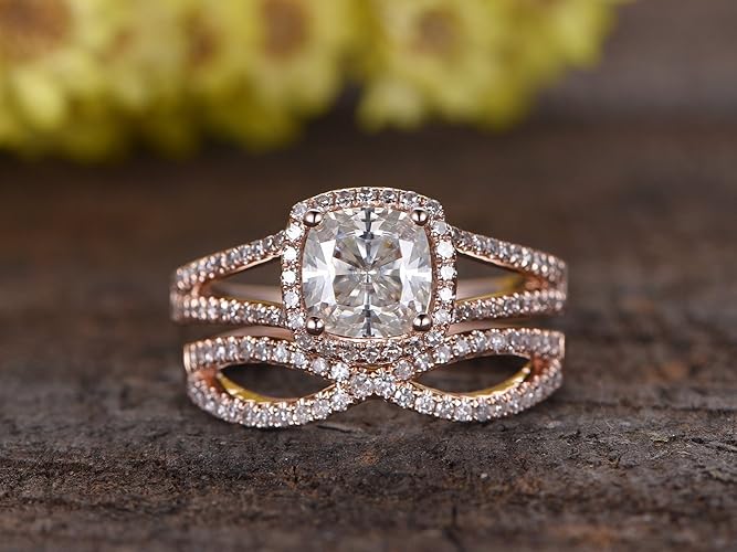 Amazon Com 2pcs Diamond Rings Set 7mm 1 7ct Cushion Cut Moissanite